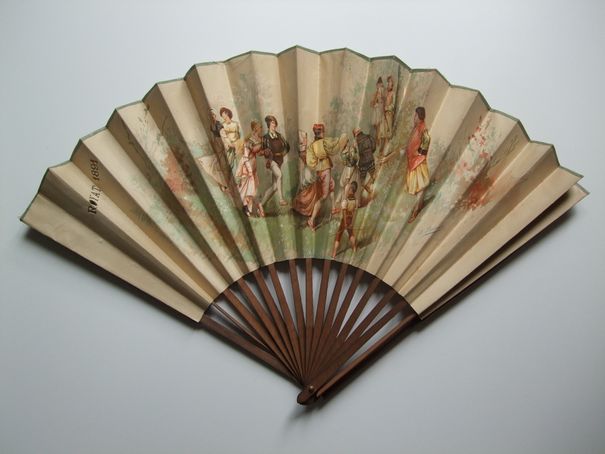 Monture en bois. feuille en papier. Signature à l'extrême droite en bleu. Estampage "Royal 1891" à gauche.