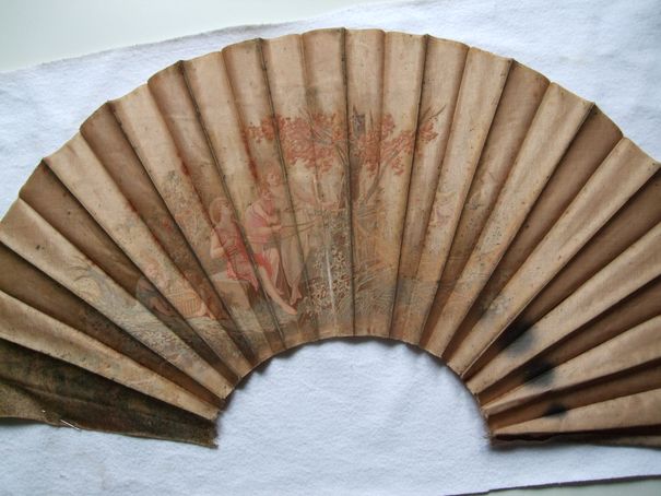 Feuille seulement; satin de soie beige. Signature à gauche.