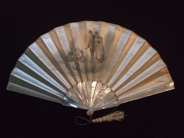 Monture à 15 brins restants (?) en nacre blanche. Bélière et passementerie.